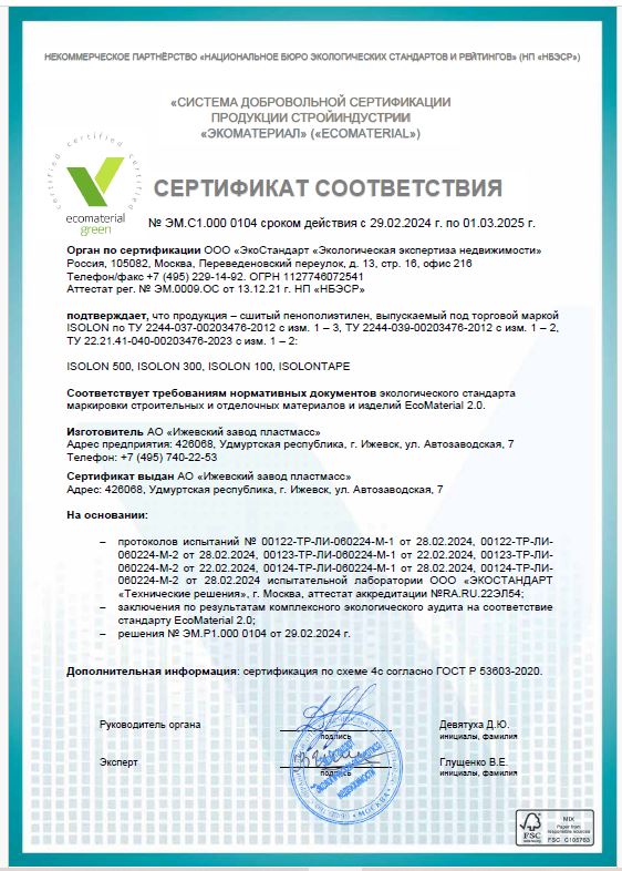 Санитарно-эпидемиологическое заключение на продукцию "Изолон" 4.